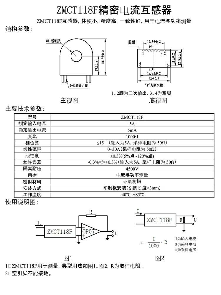ZMCT118F 5A/5mA Precision Miniature Current Transformer