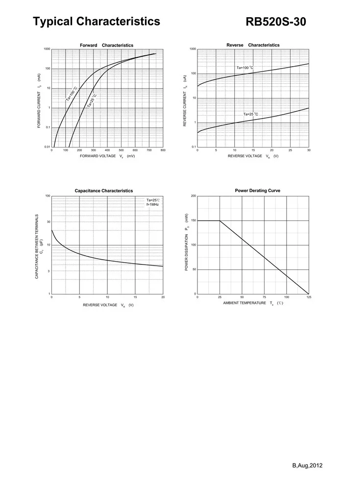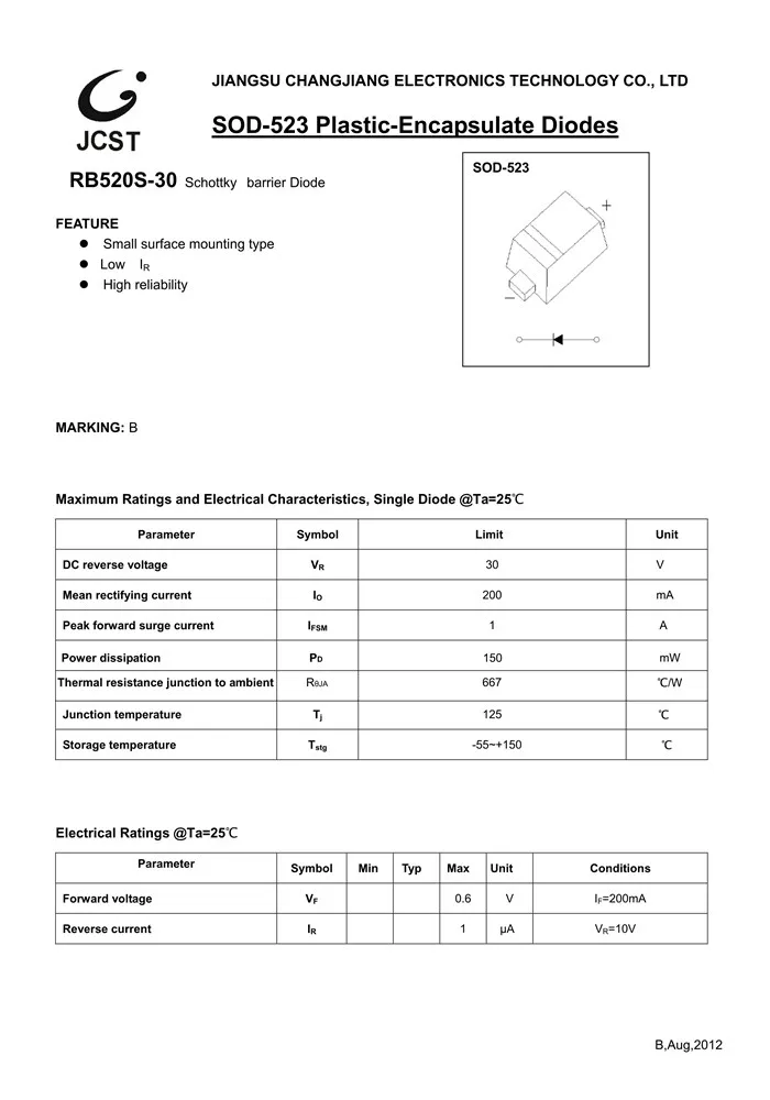 RB520S-30 B SOD-523 30V/200mA Schottky Diode lot(20 pcs)