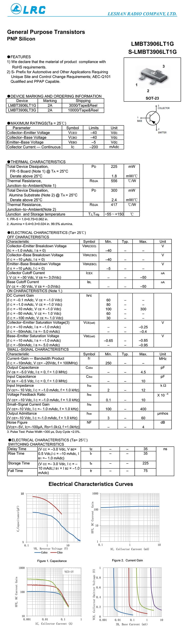 LMBT3906LT1G 2A SOT-23 Triode Transistor PNP -40V/-200mA lot(20 pcs)