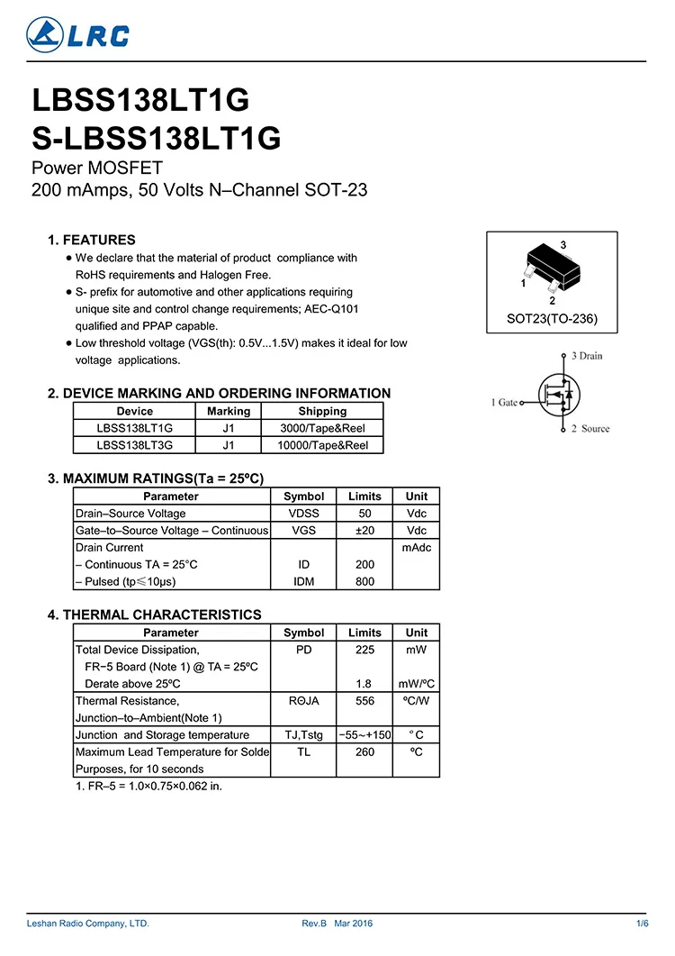 LBSS138LT1G J1 SOT-23 MOSFET N-Channel 50V/200mA lot(10 pcs)
