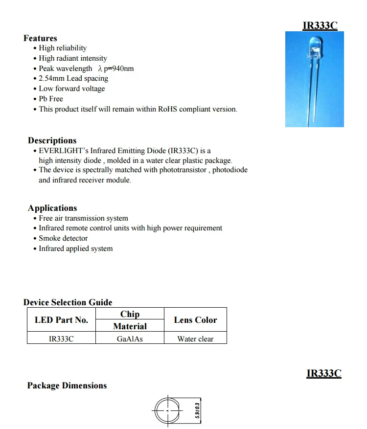 IR333C-A Infrared Transmitting Tube PT333-3B DIP-2 Infrared Receiver Tube 5mm Wavelength 940nm lot(10 pcs)