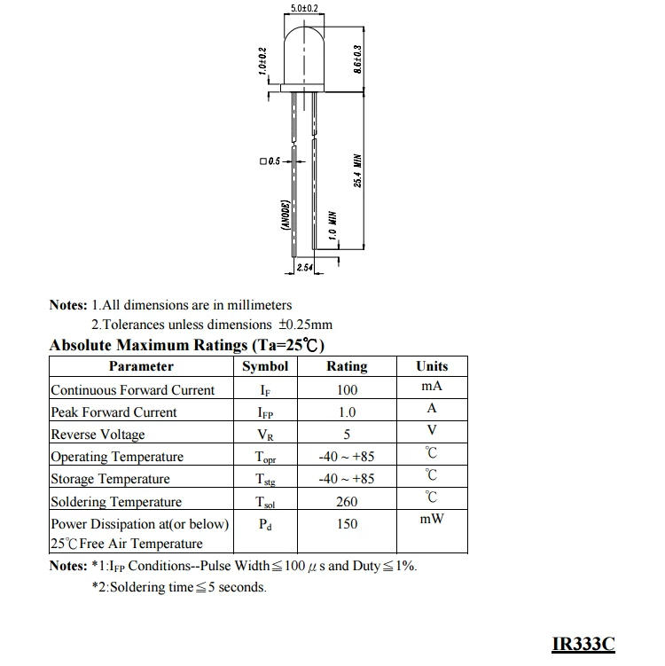 IR333C-A Infrared Transmitting Tube PT333-3B DIP-2 Infrared Receiver Tube 5mm Wavelength 940nm  lot(10 pcs)