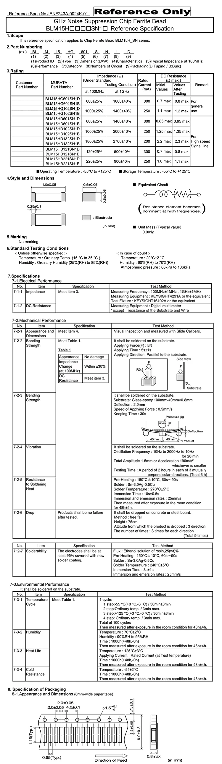 muRata 0402 SMD Ferrite Magnetic Bead ±25% lot(100 pcs)